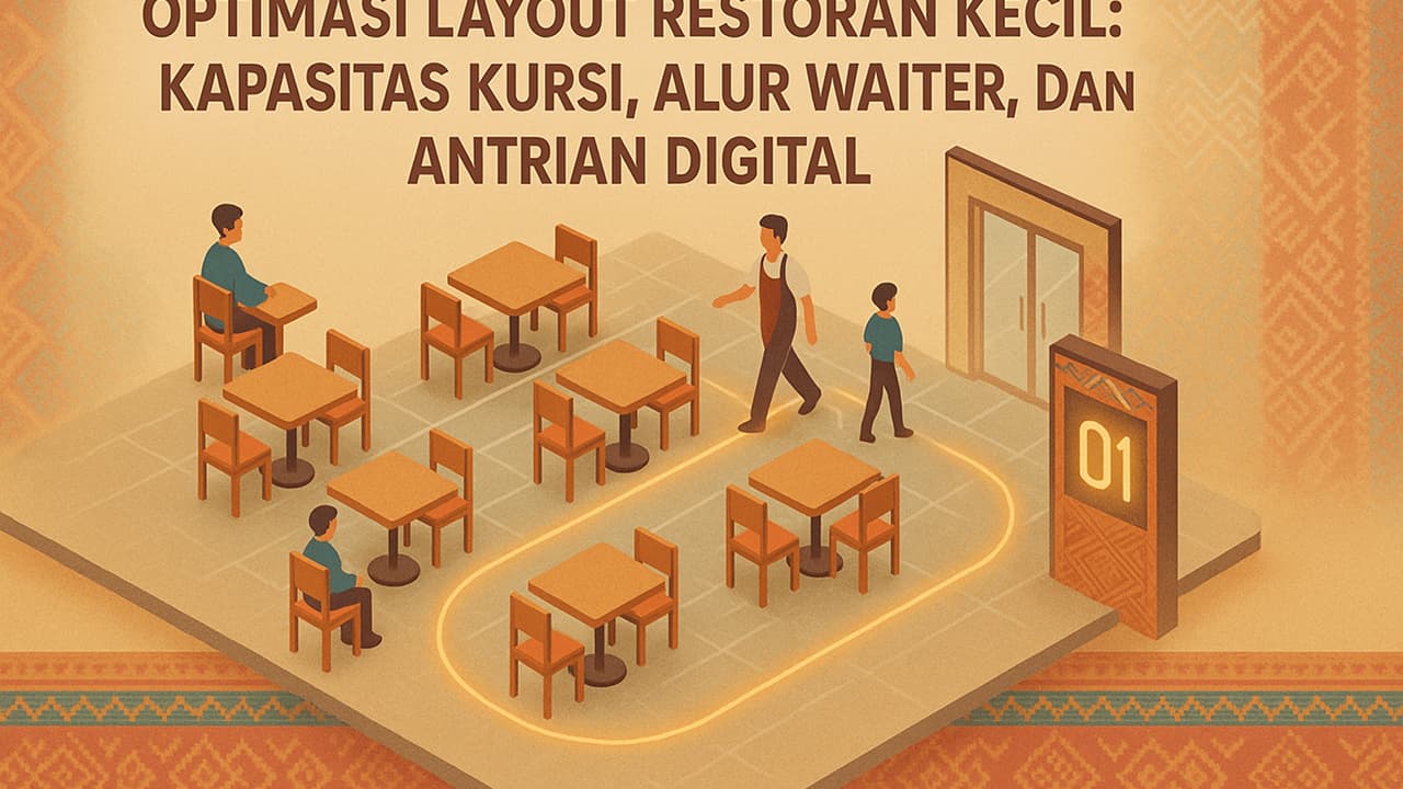 Inti dari optimasi layout restoran kecil ialah membuat ruang terbatas bekerja cerdas untuk tamu dan tim. Anda memulai dari data paling dasar: siapa yang datang, berapa lama mereka duduk, dan jalur mana yang sering macet. Lalu Anda mengeksekusi prinsip sirkulasi—koridor utama yang lega, jarak antar meja aman, serta penempatan service station di titik strategis. Di saat bersamaan, daftar tunggu digital mengendalikan pintu masuk agar tidak padat, memberi kepastian waktu kepada tamu, dan mengurangi percakapan berulang di front-desk. Siklusnya tidak berhenti di sana. Anda melakukan uji mingguan, menilai seat-turns, memperbaiki sudut belok, menukar formasi meja sesuai party size dominan, bahkan menyetel signage halus untuk mengarahkan arus. Dengan disiplin iterasi seperti ini, optimasi layout restoran kecil bukan proyek sekali jadi, melainkan kebiasaan kerja: keputusan kecil yang ditopang data, menghasilkan perputaran kursi lebih sehat, pengalaman makan lebih nyaman, serta tim yang bergerak ringkas dari jam buka hingga tutup.